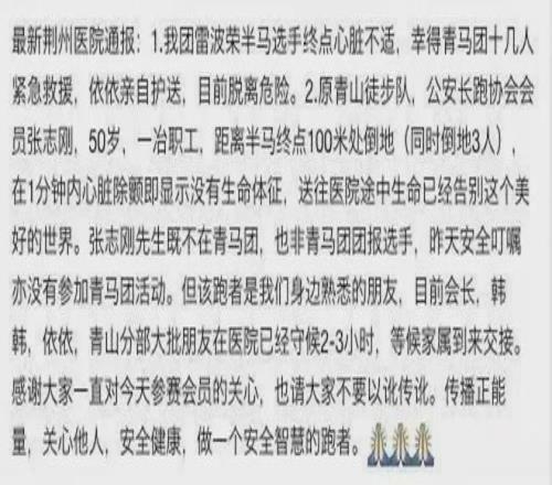 荊州醫(yī)院關(guān)于荊州國際馬拉松施救情況的通報(圖源@網(wǎng)絡(luò))▼