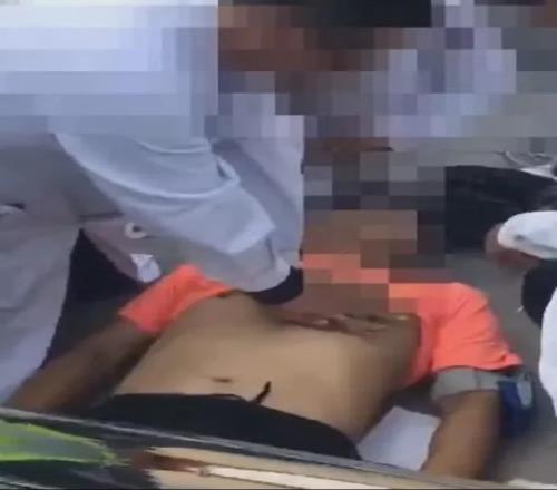 鐘先生被施救的現(xiàn)場(圖源@視頻截圖)▼