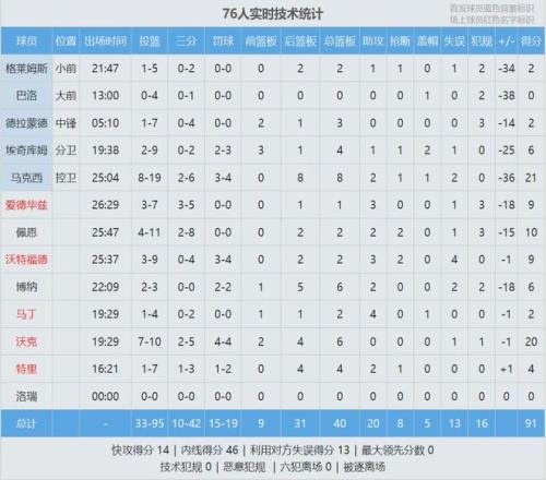 瓦塞爾出戰(zhàn)23分鐘,投籃10中7,三分8中6,罰球2中2,砍下22分5板1助2斷1帽,正負值+43全場最高。瓦塞爾+43高居隊史第二,僅次于鄧肯的+45。哈珀22分2板2助、卡斯爾15分4板10助、文班亞馬10分8板4助3斷6帽。