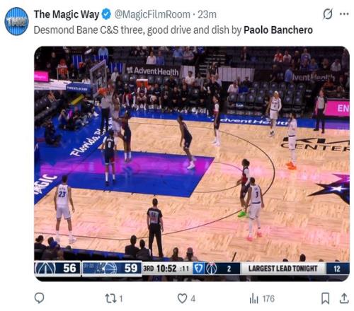 末節(jié),魔術(shù)大比分領(lǐng)先還讓班凱羅上來刷一波,進(jìn)入最后四分鐘班凱羅刷到37分就換下,這時(shí)已經(jīng)著25分之多,班凱羅終于打卡下班了。 全場(chǎng)比賽32分鐘,21中15,三分2中1,罰球7中6,拿到37分6助攻5籃板,命中率71.4%,真實(shí)命中率73.8%,正負(fù)值+26,這場(chǎng)比賽班凱羅扣籃是扣爽了,奇才防守太差,不過穩(wěn)定性也的確不行,上一場(chǎng)24分,再上一場(chǎng)只有19分。 |