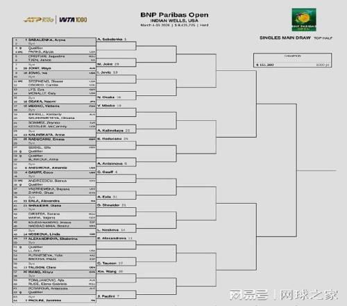 女子方面:前八大種子的對位是,上半?yún)^(qū),薩巴倫卡--阿尼西莫娃、高芙--鮑里妮;下半?yún)^(qū),佩古拉--萊巴金娜、米拉-安德列娃--斯瓦泰克。中國一姐鄭欽文位列24號種子,首輪輪空,第二輪將靜候復(fù)出的美國人布雷迪和克羅地亞人魯季奇之間的勝者。如能晉級,第三輪將對陣捷克名將穆霍娃,第四輪等待她的大概率是2號種子、世界第二斯瓦泰克,簽表夠硬。