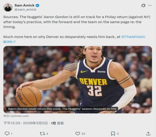 北京時間3月5日,丹佛掘金隊迎來兩個好消息:1、球隊與大衛(wèi)-羅迪簽下雙向合同,同時裁掉塔馬爾-貝茨;2、阿隆-戈登將在后天和尼克斯的比賽中正式復出。大衛(wèi)-羅迪是2022年首輪23號秀,身高1米96,NBA生涯場均6.2分2.9板1助。