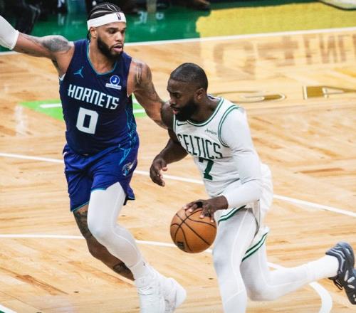 綠凱慘敗黃蜂,這場比賽杰倫-布朗手感不佳,33分鐘,19中7,三分4中1,罰球6中5,拿到20分11籃板7助攻,命中率36.8%,三分命中率25%,但他隔扣迪亞巴特的一球引爆北岸花園球館。