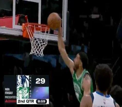 塔圖姆確實(shí)還有顧慮,不敢完全發(fā)力,一個(gè)中路突破長(zhǎng)驅(qū)籃下,起飛單臂暴扣,結(jié)果扣飛了……