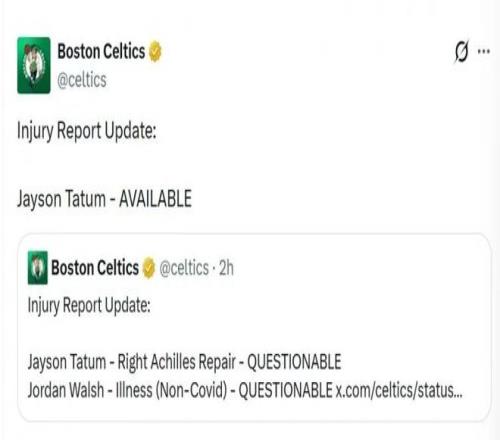 凱爾特人官宣,塔圖姆今天確定出戰(zhàn)!
