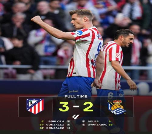 第81分鐘,尼古拉斯·岡薩雷斯在禁區(qū)內(nèi)高高躍起頭球破門,上演梅開二度的同時(shí)也打進(jìn)絕殺進(jìn)球。最終,馬競3-2險(xiǎn)勝皇家社會(huì),收獲聯(lián)賽三連勝。