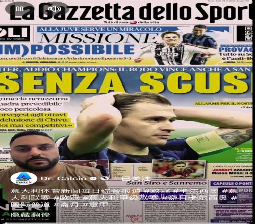真正令我驚訝的是,在社交媒體大行其道的當(dāng)下,意甲也已經(jīng)向自媒體創(chuàng)作者敞開了懷抱?!癉r.Calcio”可能真的是一個旅居意大利的博士,因為媒體看臺比較嘈雜,我并沒有機會與他進行深入交流。