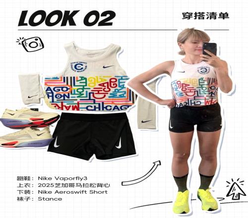 坐標(biāo)上海,跑步已經(jīng)10年的王芳,也是耐克黑馬的一員。2023年她在上海女子半馬以131跑進(jìn)上馬直通,雖然此后兩年的上海女子半馬都沒(méi)有中簽,但不妨礙她在這兩年的時(shí)間里,將自己的半馬PB刷新到了124;10公里成績(jī)提升至38分18秒。 聊到穿搭,她表示自己最大的跑步動(dòng)力就是穿好看的裝備,以前每次PB她都會(huì)給自己獎(jiǎng)勵(lì)一件精英裝備——入一些不太會(huì)撞衫的款式(或者新款)。賽中的搭配,她基本以背心為主搭半彈。襪子的選擇上,她尤其喜歡穿中筒襪,她覺(jué)得這可以讓她的腿型更好看。 今年,再次站上上海女子半馬起點(diǎn)的她,沒(méi)有成績(jī)目標(biāo),主要以跑個(gè)上馬直通名額以及享受女子跑步的賽道氛圍為主。巧合的是,她的好朋友也將在這一天參加名古屋的馬拉松。所以在定妝穿搭的選擇上,她選擇了25年芝加哥馬拉松的背心:一是因?yàn)檫@件背心日前沒(méi)有在比賽中穿過(guò),撞衫率應(yīng)該也不會(huì)很高;二是因?yàn)檫@件背心是跑名古屋的好朋友送的,王芳希望穿上它給朋友一個(gè)“取得一個(gè)好成績(jī)”的祝福。