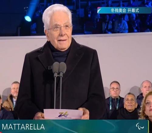 意大利共和國總統(tǒng)塞爾焦·馬塔雷拉(Sergio Mattarella)?正式宣布米蘭-科爾蒂納冬殘奧會開幕。