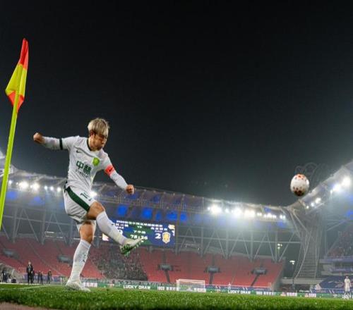 3月8日,北京國安隊球員張稀哲在比賽中發(fā)角球。新華社記者 肖藝九 攝