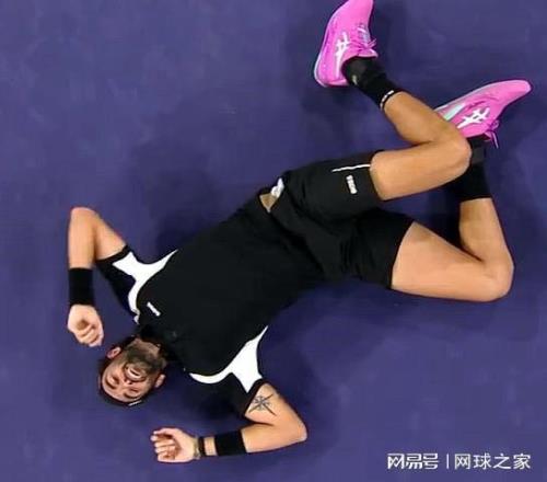 最后來(lái)猜一猜認(rèn)一認(rèn)。下面這張圖片是一位球員贏球后倒地。不作提示,您能認(rèn)出他是誰(shuí)嗎?