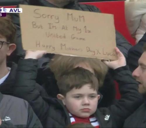 和母親節(jié)沖突,小球迷舉牌:抱歉媽媽,但我是首次現(xiàn)場看曼聯(lián)