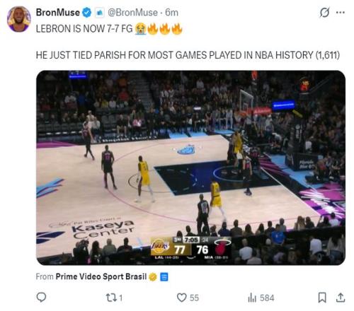 昨夜勒布朗在面對(duì)火箭的比賽中14中13+三分2中2拿到30分一戰(zhàn)刷新多項(xiàng)紀(jì)錄,41歲的老將此役決定出戰(zhàn)背靠背后他生涯登場(chǎng)數(shù)1611場(chǎng)追平了帕特里什并列歷史第一,這位歷史最長(zhǎng)的河繼續(xù)創(chuàng)造歷史。