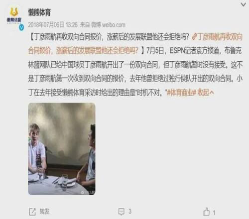 丁彥雨航也曾嘗試過沖擊NBA,并分別獲得過獨(dú)行俠和籃網(wǎng)提供的雙向合同,但被他全部拒絕。