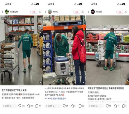 這些車(chē)手,也開(kāi)始在中國(guó)獲得了明星式的待遇。車(chē)手們?cè)谝獯罄宛^吃飯、喝了阿嫲手作、在凱悅健身、去豫園玩, 都被實(shí)時(shí)追蹤,附上粉絲合影。甚至,連阿斯頓馬丁車(chē)隊(duì)去開(kāi)市客采購(gòu),因?yàn)槭堑谝恢г谏虾9_(kāi)穿制服出動(dòng)的車(chē)隊(duì),都被360度偷拍。