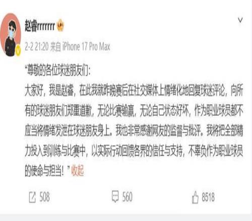 之前趙睿就曾在北京輸給青島的賽后,在評論區(qū)口不擇言,說了一些不當(dāng)言論攻擊新疆球迷,從而引發(fā)了不小的風(fēng)波,那件事鬧得沸沸揚(yáng)揚(yáng),不少新疆當(dāng)?shù)氐墓倜蕉加H自下場聲討趙睿,最終,CBA聯(lián)賽在時(shí)隔多天后對趙睿開出了“重磅”處罰,對趙睿開出了停賽3場,罰款5萬的罰單,北京首鋼俱樂部被核減聯(lián)賽經(jīng)費(fèi)5萬,這件事才最后不了了之。