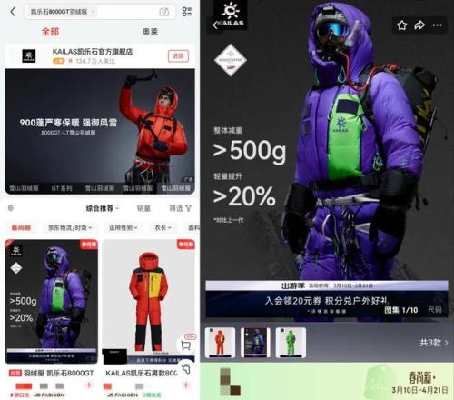 這種精準(zhǔn)也體現(xiàn)在了賽事的合作上。 凱樂石十分看重賽事,與硬核玩家近距離接觸。以越野賽為例,許多如今赫赫有名的賽事,背后離不開凱樂石多年的贊助和運(yùn)營。像莫干山跑山賽,2017年只有800人參加,如今上萬人報名,從“地方小賽”一躍成為“亞洲頂流”。 而與京東的合作,極具實際價值。舉個例子,在一次賽事合作中,用戶通過京東GO報名小程序,還能一條龍預(yù)訂“洗鞋洗衣”服務(wù),賽后一身塵土甚至泥巴的跑者可以直接把鞋服交給京東,洗完送回家。通過這些服務(wù),達(dá)到了收束專業(yè)用戶群、沉淀精準(zhǔn)用戶的效果。 由于用戶精準(zhǔn),沖動消費(fèi)的情況很少,由此也帶來了更低的退貨率。舉個例子,一件商品要從倉庫真正送到消費(fèi)者手里,會因為退貨必然要流轉(zhuǎn),一般會來回輪轉(zhuǎn)六七次,但在京東最多轉(zhuǎn)三次就能到用戶手里,不會被退回。 除了低退貨率,京東在用戶方面還有個獨特優(yōu)勢,能承接凱樂石最極致的產(chǎn)品力。 例如凱樂石8000GT羽絨服,為探險珠峰設(shè)計,能扛住-40℃極寒、280km/h暴風(fēng),并且耐磨、防刺。有這類產(chǎn)品需求的人無疑少之又少,而負(fù)責(zé)人表示,“專業(yè)級產(chǎn)品線和專業(yè)護(hù)具,只有京東能賣出去。”這也說明了,用戶契合度高背后,不僅指普通愛好者或戶外老炮,也涵蓋了更專業(yè)、更小眾的人群。