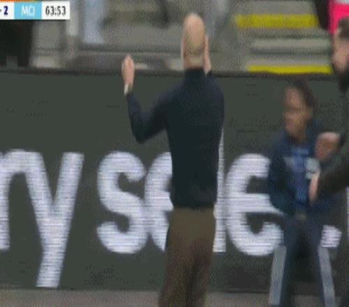 而當(dāng)奧萊利4分鐘后完成梅開二度,瓜帥則徹底釋放,他激動狂奔慶祝,為此甚至還吃到一張黃牌警告。